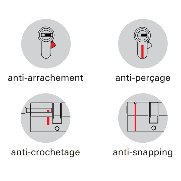 - Comprend 5 clés réversibles avec carte personnelle associée (reproduction en usine uniquement).