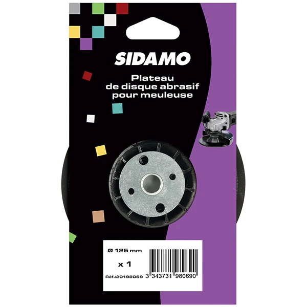 Le plateau Sidamo auto-agrippant pour meuleuse vous permet de fixer un disque abrasif à une meuleuse à écrou M15. Une fois le disque inséré, ce dernier est maintenu bien en place grâce à la forme concave du plateau.