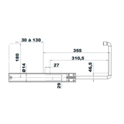 Crochet à Crémaillère Sur Platine Aluminium Blanc Torbel Longueur 500 Mm